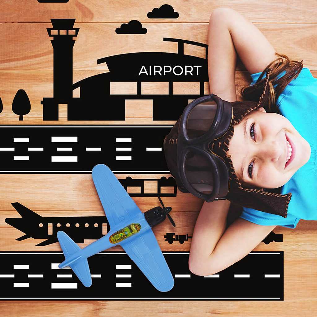 Bellissima adesivo da pavimento Aeroporto. L'adesivo da pavimento aeroportuale è stato creato per gli appassionati di avventure nei cieli. Dopotutto, chi da bambino non sognava di diventare un pilota? :) Aiutiamo a realizzare questi sogni e garantiamo un divertimento celestiale, senza occupare spazio inutile nella cameretta. Il nostro prodotto è unico e senza pari. Realizzato in una speciale pellicola e laminato opaco, grazie al quale la sua superficie è resistente e indelebile. L'adesivo è adatto per il pavimento, ma può essere applicato anche su qualsiasi altra superficie liscia, come pareti o mobili. Non aspettare oltre. Regala a tuo figlio un divertimento straordinario e riduci i tempi di pulizia. Questo set include: aeroporto (90x77 cm) e elementi decorativi. Le dimensioni precise sono indicate nell'ultima foto.