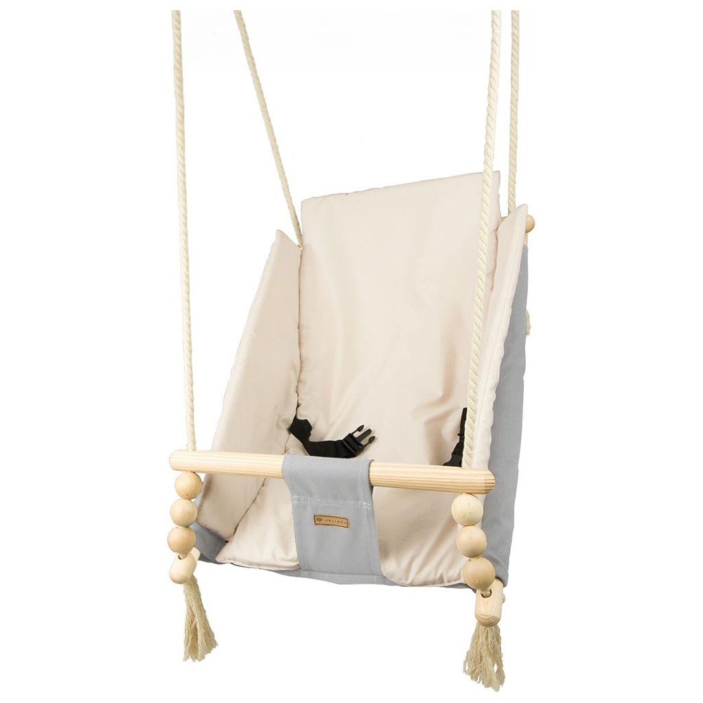 Altalena per bambini con cinture di sicurezza. L'altalena per bambini offre grande gioia ai piccoli, li calma, li rilassa e ricorda la sensazione familiare di essere nel pancione della mamma. Progettata in stile scandinavo, caratterizzata da funzionalità e versatilità, si integra perfettamente in qualsiasi interno ed esterno.