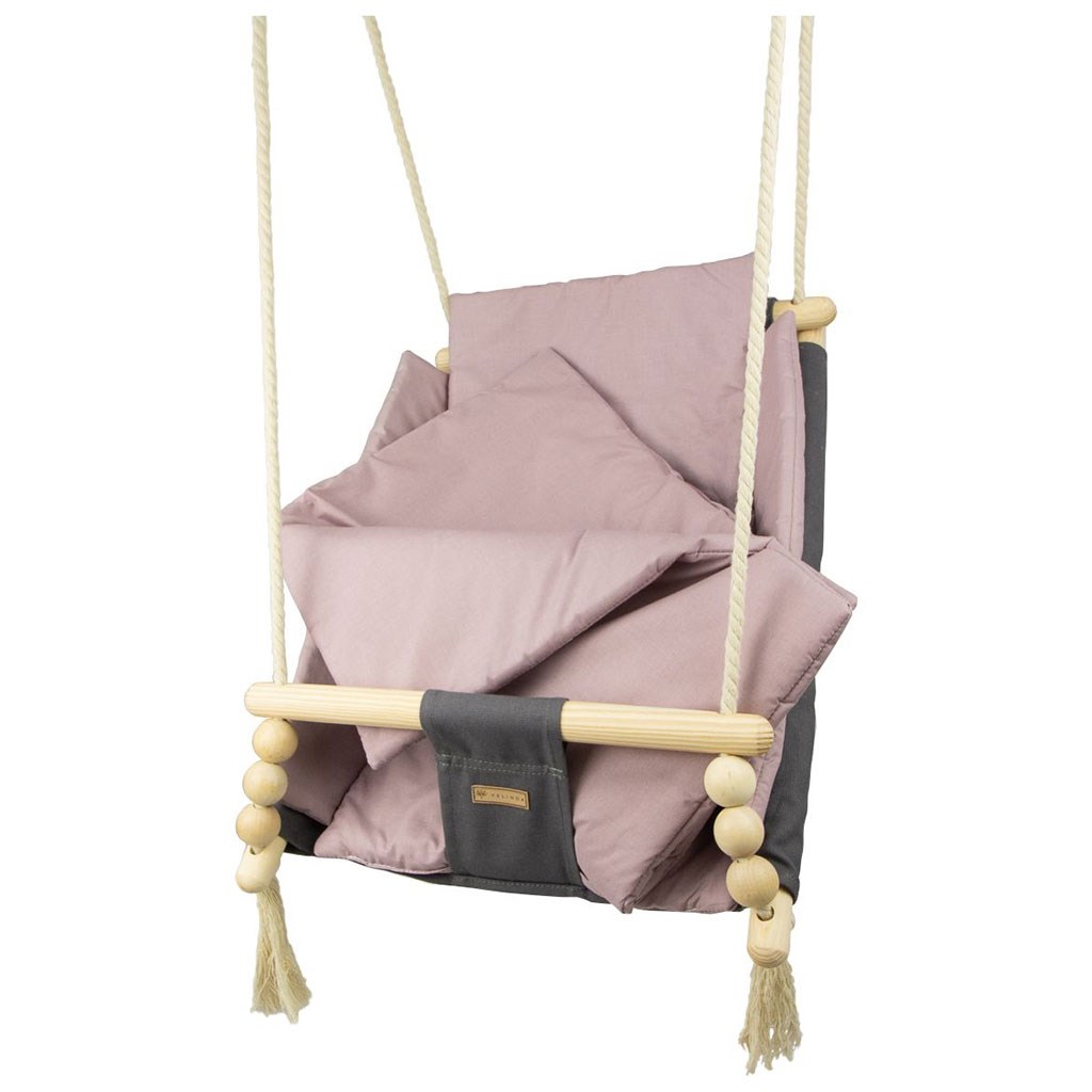 Grazie all'uso di cotone morbido al tatto, il bambino si sente accogliente, comodo e al sicuro. Le robuste corde di cotone sono dotate di ruote metalliche che consentono di installare l'altalena anche su terrazze, verande o in giardino.