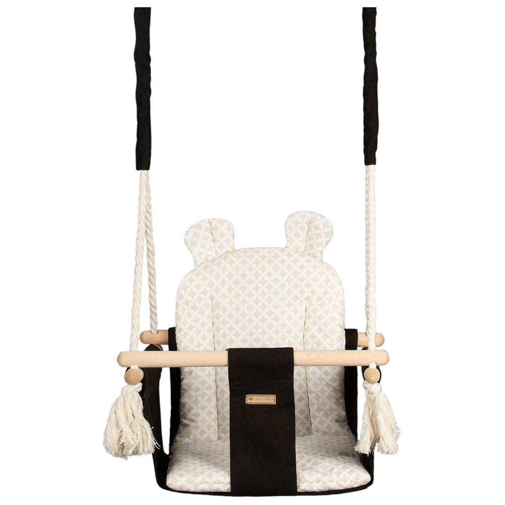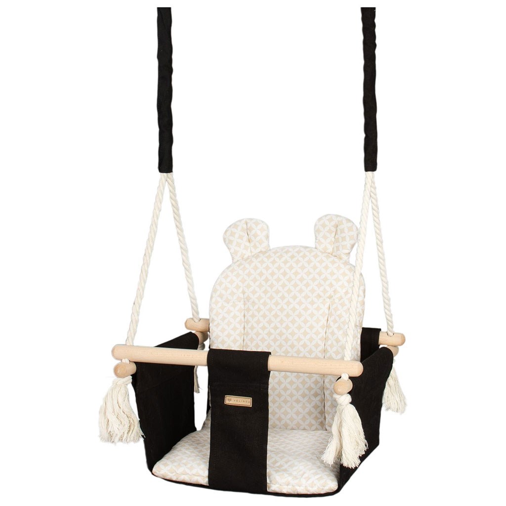 Un elemento accessorio dell'altalena sono le adorabili orecchie e il morbido cuscino posizionato sul sedile, che aumenta il comfort del bambino mentre gioca.
