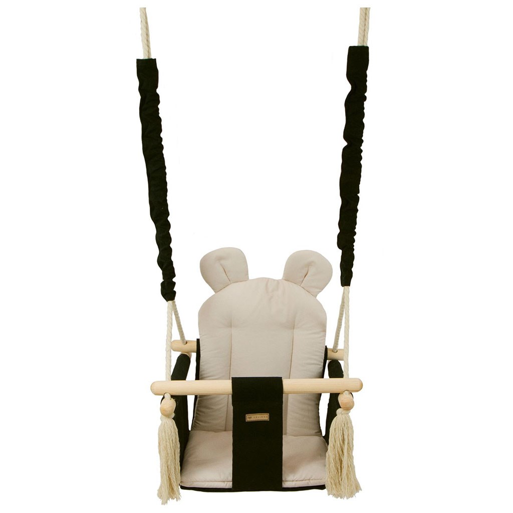 Un elemento accessorio dell'altalena sono le adorabili orecchie e il morbido cuscino posizionato sul sedile, che aumenta il comfort del bambino mentre gioca.