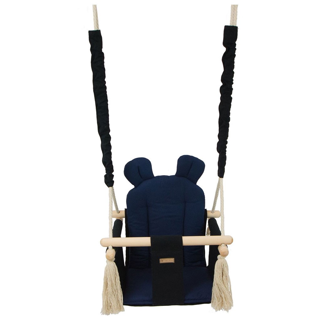 Un elemento accessorio dell'altalena sono le adorabili orecchie e il morbido cuscino posizionato sul sedile, che aumenta il comfort del bambino mentre gioca.
