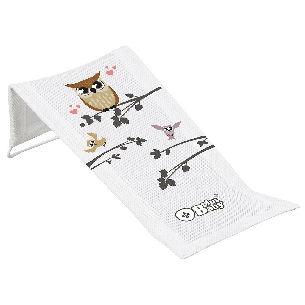 Lettino in tessuto per vasca con immagine di gufo. Design moderno, lavorazione di alta qualità, manutenzione semplice, tutto questo offre il lettino. È un aiuto molto pratico nella cura del bambino. Facilita il bagnetto sicuro per i neonati e, grazie alla sua forma anatomica, aiuta a mantenere il bambino in acqua. Il bambino si sente più rilassato sul lettino e il bagnetto diventa un momento di gioia. Si può posare il neonato sul lettino morbido, lasciando entrambe le mani libere per lavarlo comodamente. Materiale: telaio in acciaio, rivestimento in tessuto. Il rivestimento in tessuto è teso sul telaio, ed è facilmente rimovibile e lavabile in lavatrice. Dimensioni: lunghezza x larghezza circa 42x20 cm.