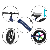 Resistente e realizzata con la tecnologia più avanzata in schiuma EVA. Le ruote da 12", che non si forano e non necessitano di gonfiaggio, sono a bassa manutenzione. La sella ergonomica regolabile in altezza con imbottitura morbida garantisce il comfort del bambino e cresce con lui. La bicicletta Ranger Flash dispone di manubri e ruote a cuscinetti. Le impugnature antiscivolo in gomma morbida assicurano una presa sicura e una comoda manovrabilità.