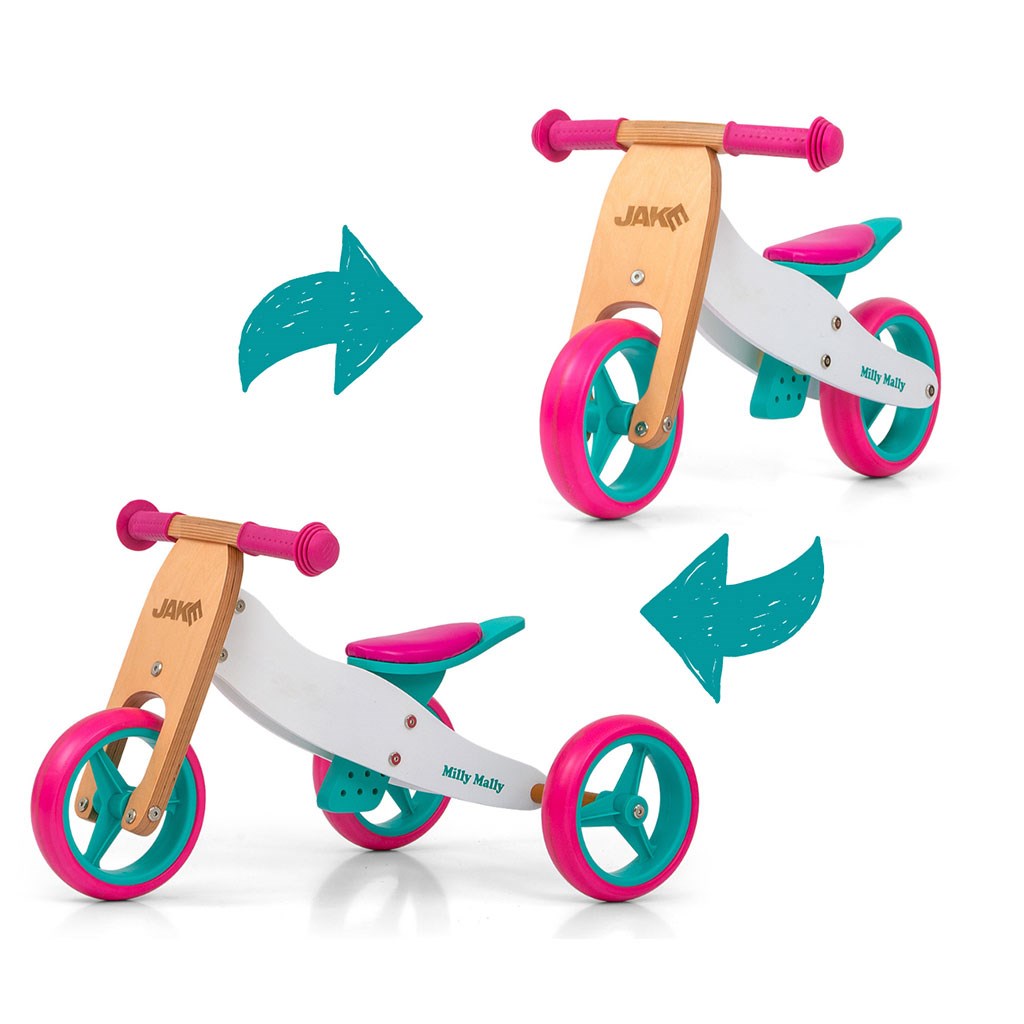 Il triciclo multifunzionale per bambini Milly Mally JAKE è ideale per i bambini che stanno appena iniziando a imparare ad andare in bicicletta e che ancora non riescono a mantenere l'equilibrio su due ruote. Il vantaggio del JAKE è che da triciclo si trasforma facilmente in un bilanciere a due ruote. È realizzato in legno robusto con bellissimi colori vivaci e immagini di ruote in schiuma. La larga distanza tra le ruote offre una stabilità, sicurezza e comfort estremi sia dentro che fuori casa. L'impugnatura morbida e antiscivolo protegge la mano del bambino. Un bellissimo bilanciere multifunzionale, che piacerà sia alle bambine che ai bambini.