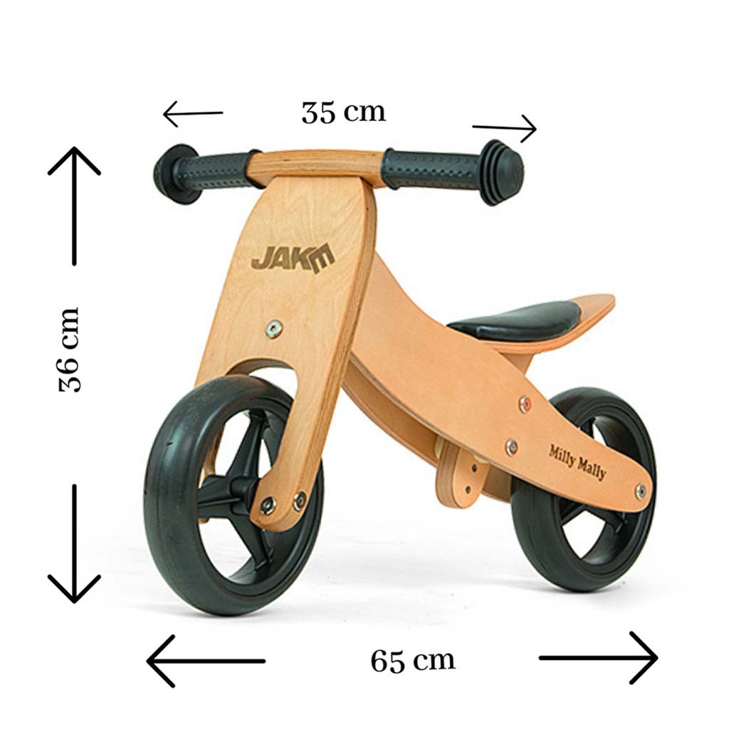 Il triciclo multifunzionale per bambini Milly Mally JAKE è ideale per i bambini che stanno appena iniziando a imparare ad andare in bicicletta e che ancora non riescono a mantenere l'equilibrio su due ruote. Il vantaggio del JAKE è che da triciclo si trasforma facilmente in un bilanciere a due ruote. È realizzato in legno robusto con bellissimi colori vivaci e immagini di ruote in schiuma. La larga distanza tra le ruote offre una stabilità, sicurezza e comfort estremi sia dentro che fuori casa. L'impugnatura morbida e antiscivolo protegge la mano del bambino. Un bellissimo bilanciere multifunzionale, che piacerà sia alle bambine che ai bambini.