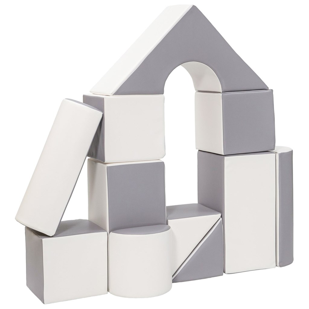 Tutti gli elementi sono sicuri, leggeri e morbidi, possono essere utilizzati per creare diverse costruzioni, per esercitarsi o semplicemente per sedersi. I blocchi permettono ai bambini di sviluppare fantasia, coordinazione e abilità motorie.