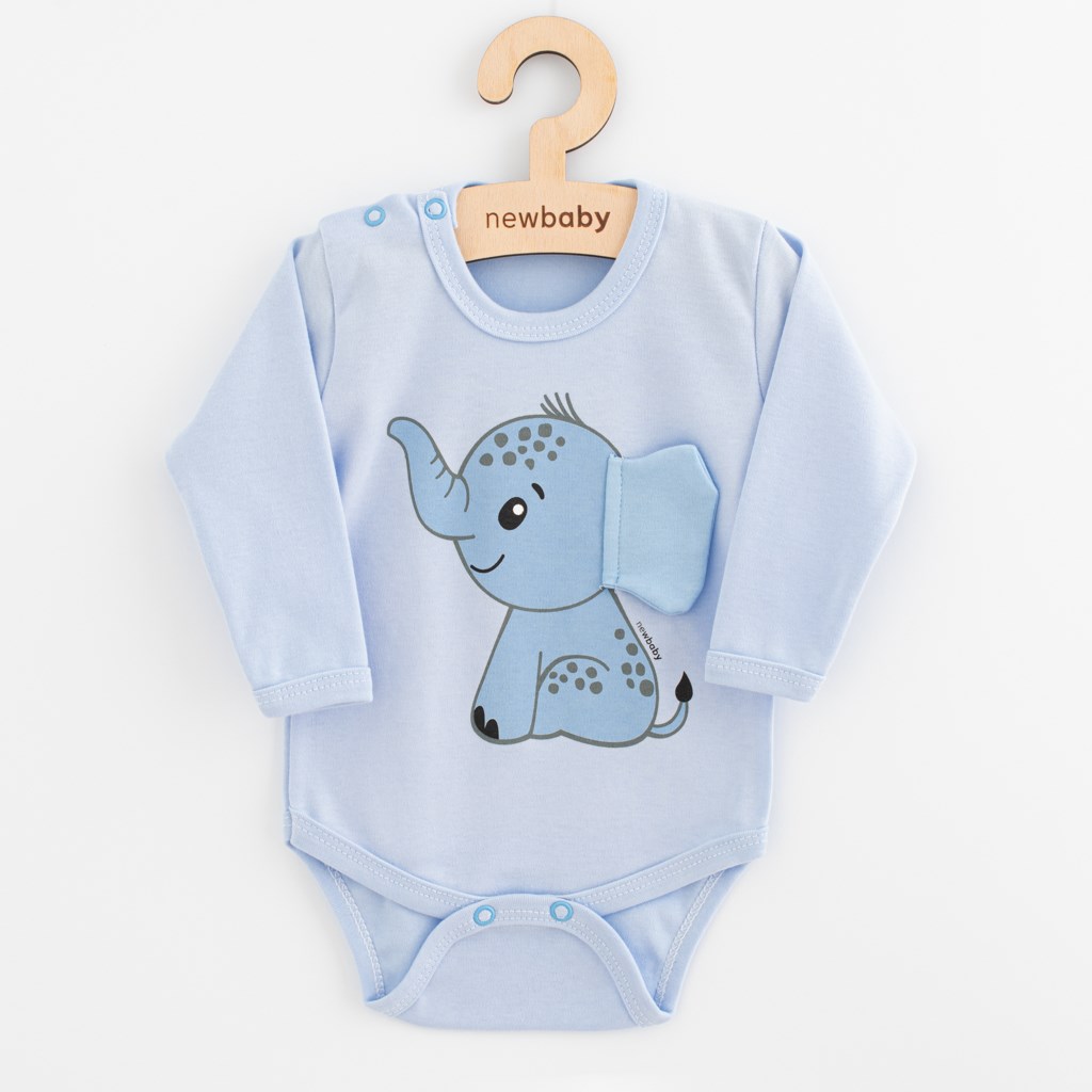 Delizioso body in cotone per neonati con maniche lunghe del marchio ceco New Baby Happy Elephant per i più piccoli. Il body è decorato con un'adorabile immagine di un elefantino con un orecchio 3D, che serve ai bambini anche come elemento calmante o giocattolo durante l'addormentamento. La pratica chiusura a bottoni sulla spalla e tra le gambe facilita notevolmente il vestire e il cambio. Composizione: 100% cotone. OEKO-TEX STANDARD 100. Crediamo che la nostra collezione originale vi conquisterà per qualità, morbidezza e design.