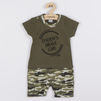 Body per neonato in cotone alla moda con maniche corte del marchio ceco New Baby Army per bambini. Questo body monocolore è decorato con la scritta DADDY´S BRAVE GIRL. Il collo, le gambe e le maniche sono rifiniti con un bordo in motivo mimetico. Il nostro body è adorabile e allo stesso tempo elegante. La pratica chiusura a pressione sulla spalla e tra le gambe facilita notevolmente il vestire e il cambio. Il body è un capo di abbigliamento importante per i neonati. In qualsiasi movimento, la schiena del bambino rimane sempre coperta. Lo stile army è tornato di moda ed è mozzafiato. Poniamo attenzione alla qualità e grazie al materiale morbido, piacevole e di alta qualità, il tuo bambino si sentirà molto a suo agio nel body. Composizione: 100% cotone.