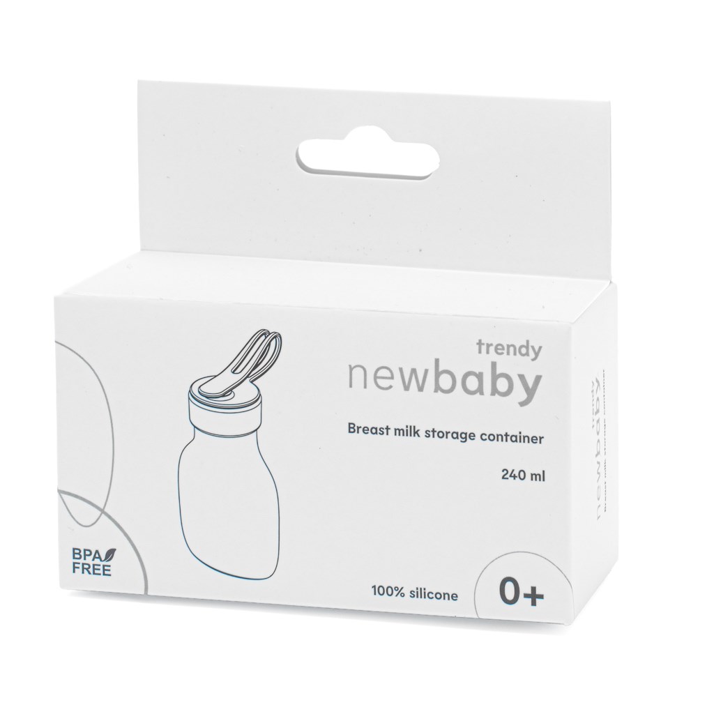 Contenitore in silicone per latte materno della marca New Baby della serie Trendy unisce un design moderno e minimalista con un utilizzo pratico per le necessità quotidiane delle mamme.