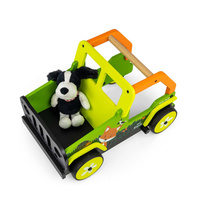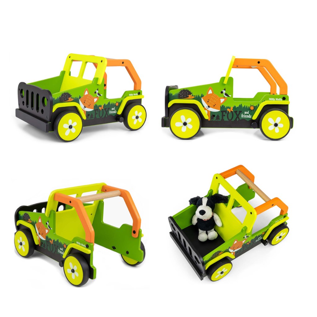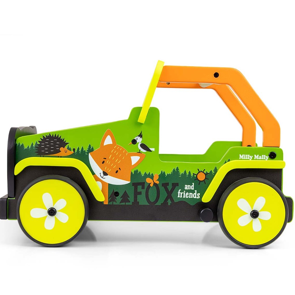 Questo passeggino per bambini, ispirato ai leggendari fuoristrada, è realizzato in legno di alta qualità e materiali ecologici. I rivestimenti delle ruote sono realizzati in plastica TPR morbida, flessibile e resistente, che consente l'uso su tutte le superfici senza danneggiare o graffiare. Non contengono plastificanti e sono ecologici.