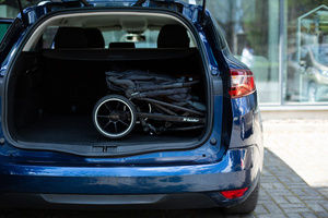 Una volta piegata, ha dimensioni compatte, praticamente le stesse di una carrozzina per un bambino piegata.