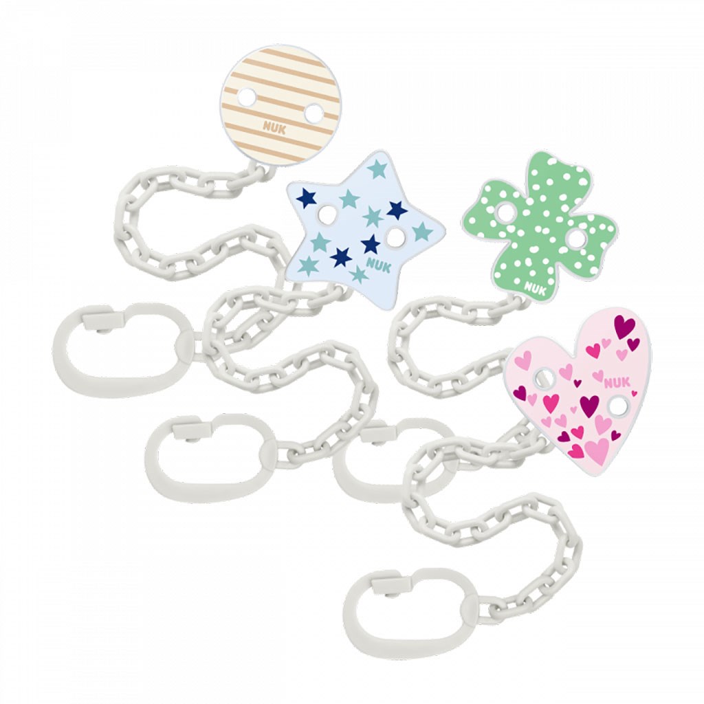 Il divertente e colorato portaciuccio NUK è un ottimo aiuto per i neonati e i genitori. È indispensabile soprattutto durante i viaggi e le passeggiate. Grazie alla clip, il ciuccio non cade a terra, non si sporca e non si perde. È facile da usare ed è progettato per essere attaccato ai vestiti del bambino. I colori vivaci e le immagini divertenti cattureranno l'attenzione del bambino. Adatto per bambini sin dai primi giorni di vita. Compatibile con ciucci dotati di anello.