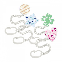 Il divertente e colorato portaciuccio NUK è un ottimo aiuto per i neonati e i genitori. È indispensabile soprattutto durante i viaggi e le passeggiate. Grazie alla clip, il ciuccio non cade a terra, non si sporca e non si perde. È facile da usare ed è progettato per essere attaccato ai vestiti del bambino. I colori vivaci e le immagini divertenti cattureranno l'attenzione del bambino. Adatto per bambini sin dai primi giorni di vita. Compatibile con ciucci dotati di anello.