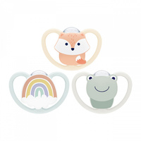 Succhietto in silicone per neonati NUK Space 1/box 0-6 mesi con una bella immagine colorata di animali. Il nuovo succhietto Space con design innovativo e moderno consente alla delicata pelle del bambino di respirare. Specificamente progettato per la pelle sensibile del bambino, è dotato di una robusta scatola riutilizzabile per la conservazione, il trasporto e la sterilizzazione igienica nel microonde. Il collo più stretto e sottile della tettarella riduce la pressione su mascelle e denti. La tettarella piatta e il fondo più liscio sono progettati per un'esperienza più confortevole e più spazio per i movimenti di suzione naturali. La forma naturale ricorda quella del capezzolo materno durante l'allattamento e supporta lo sviluppo sano complessivo del neonato. Il succhietto è realizzato in plastica di alta qualità e silicone. Il vantaggio del silicone è che è inodore e facile da pulire. Non contiene BPA. Tutti i succhietti NUK vengono regolarmente testati e monitorati da istituti indipendenti.