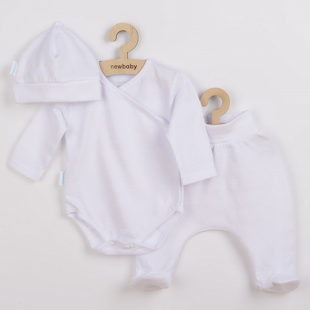 Delizioso completo per neonati a 3 pezzi del marchio ceco New Baby I AM per i piccoli. Il completo è realizzato in un materiale molto piacevole, morbido e di alta qualità, adatto per i neonati e non solo per l'ospedale. Include un body interamente apribile con maniche lunghe, pantaloni a metà e un cappellino. Il body ha una chiusura laterale lungo tutta la lunghezza e bottoni tra le gambe. I pantaloni a metà hanno un bordo elastico più ampio in vita, che non preme sulla pancia del bambino. Il cappellino con bordo più ampio si mantiene bene sulla testa del neonato e non scivola via. È molto pratico e non preme sulla testa del bambino. L'intero completo ha un nuovo design straordinario con un motivo attraente. È progettato tenendo conto delle esigenze del neonato ed è anche un bel regalo. Il completo viene fornito in una pratica scatola Eco. Composizione: 100% cotone.