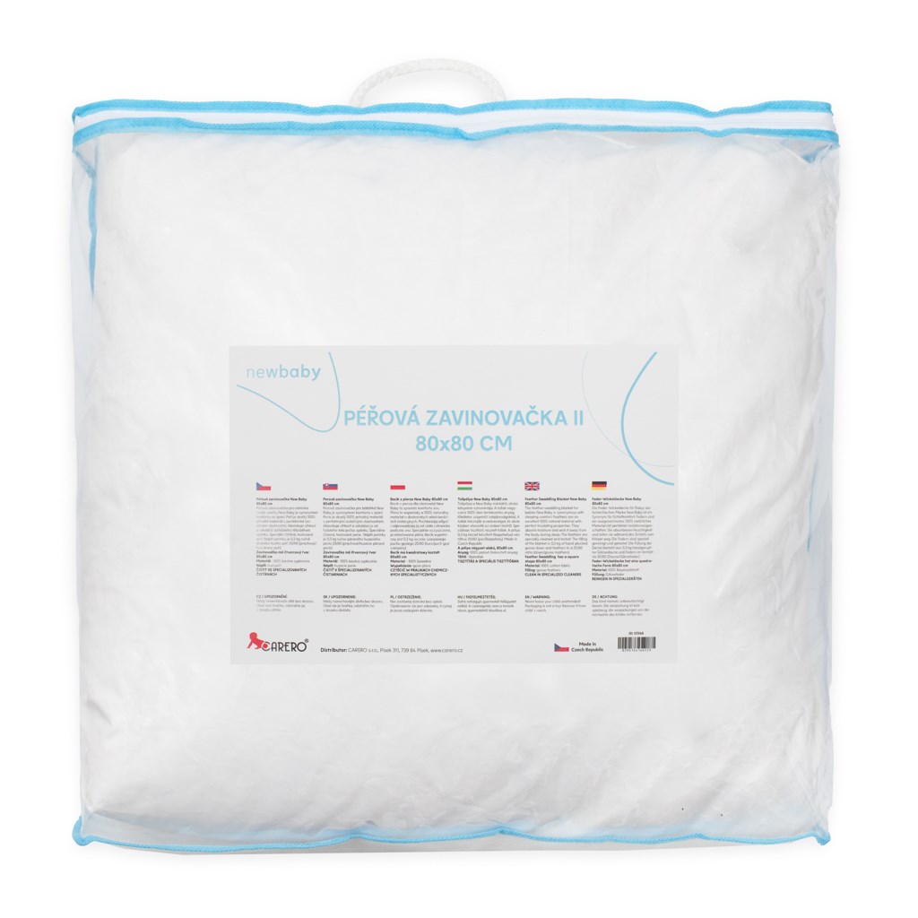 Coccola di Lusso in Piuma 80x80 senza punta allungata del marchio ceco New Baby è sinonimo di comfort nel sonno. La coccola in piuma offre al neonato una sensazione di morbidezza, calore e sicurezza, simile a quella del pancione materno. Aiuta così il neonato ad adattarsi alle nuove condizioni. Grazie alle straordinarie proprietà delle piume, la coccola mantiene una temperatura stabile per il bambino. Le piume assorbono l'umidità e la allontanano dal corpo umano durante il sonno. Piume speciali, pulite e testate. Le nostre coperte contengono l'80% di piume d'oca selezionate a mano e il 20% di piumino (0,3 kg).