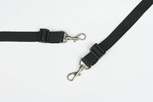 Due cinghie regolabili terminate con un moschettone permettono di fissare facilmente e in sicurezza il trasportino nel bagagliaio dell'auto. Le cinghie devono essere attaccate alle maniglie del trasportino e regolate in lunghezza per evitare movimenti durante la guida.