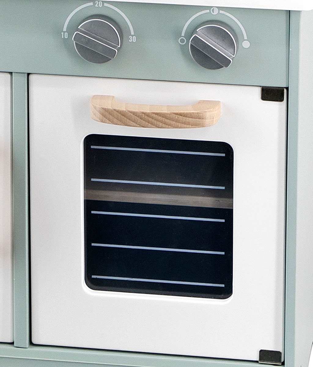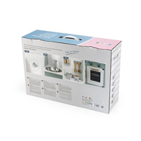 Ogni cucina è dotata di un lavello, un forno e un piano cottura, dove puoi preparare i piatti preferiti per tutta la famiglia. Metti una pentola sul fornello, che si illuminerà, e prepara qualsiasi piatto per le bambole e i peluche. Il piano cottura è fornito degli accessori necessari per cucinare.