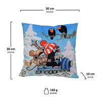 Cuscino morbido con motivo di Krteček, adatto per la culla, per i viaggi e come decorazione nella cameretta. Materiale: microvelour, illustrazione stampata, imbottitura in fibra cava. Retro blu chiaro.