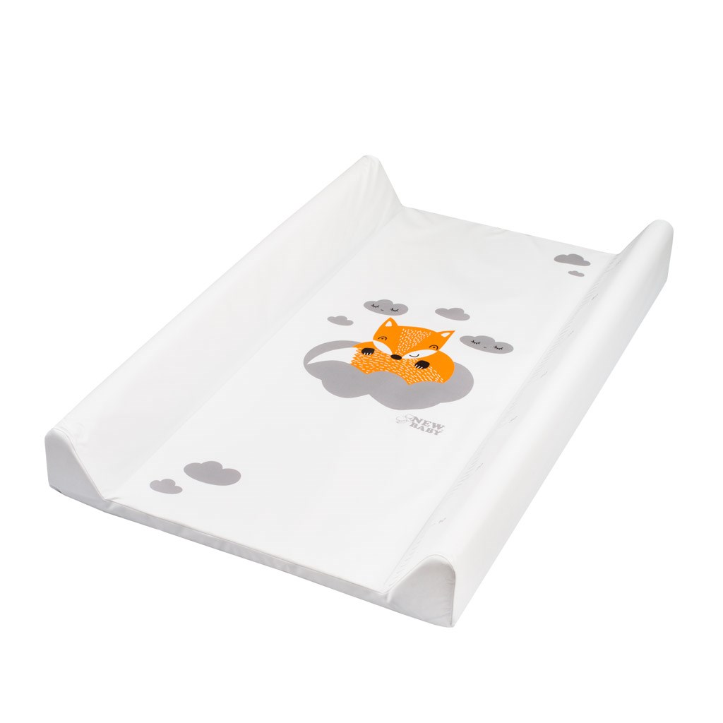Pratica traversina per il cambio New Baby, sagomata e realizzata in materiale plastico impermeabile, con un disegno di volpe e nuvole. Prodotto di marca ceca. La traversina è imbottita in poliestere, ha lati rialzati ed è utilizzabile su un comò o in un altro luogo per il cambio del bambino; grazie al suo leggero peso è facilmente trasportabile. È realizzata con film certificato di altissima qualità, privo di sostanze nocive e delicato sulla pelle sensibile dei neonati. Senza base rigida. Dimensioni: circa 80x50 cm, spessore circa 2 cm, altezza dei bordi 8 cm.