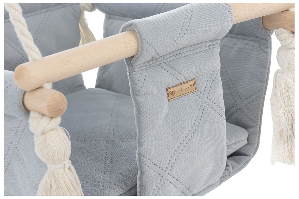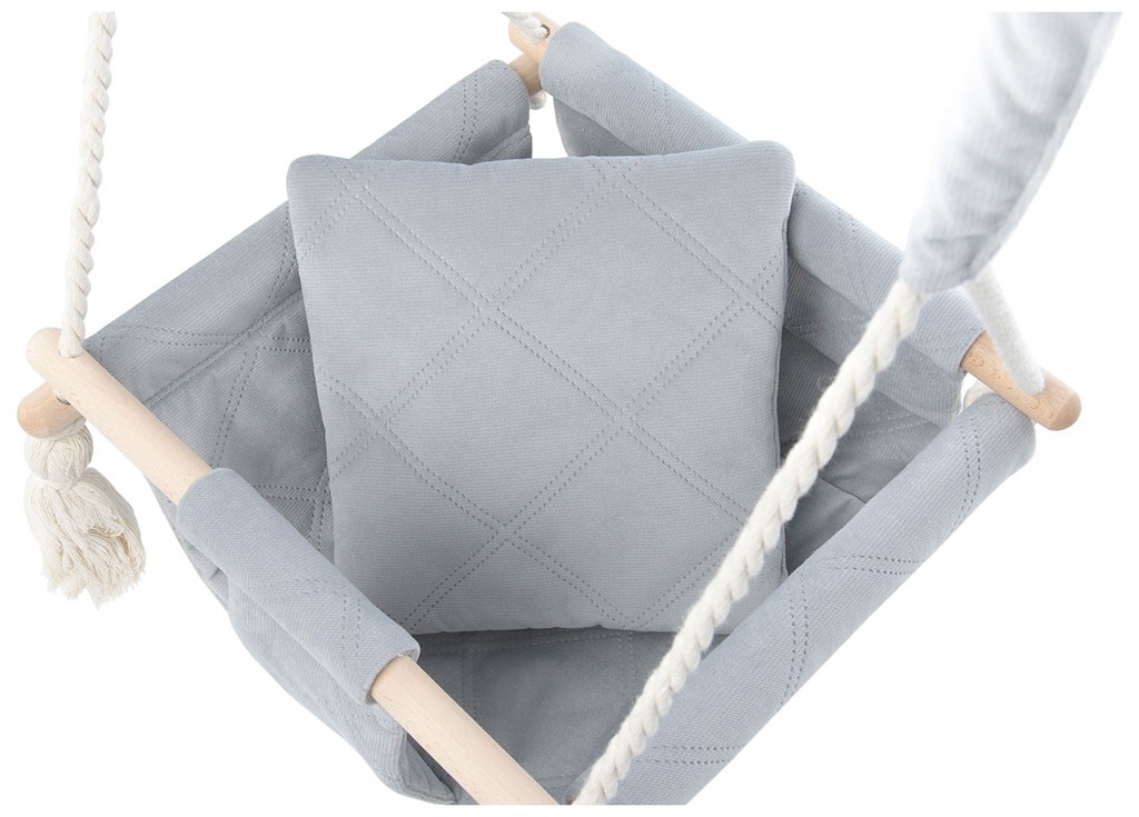 Un elemento supplementare dell'amaca è il cuscino e una morbida imbottitura situata sul sedile, che aumenta il comfort del bambino mentre gioca.