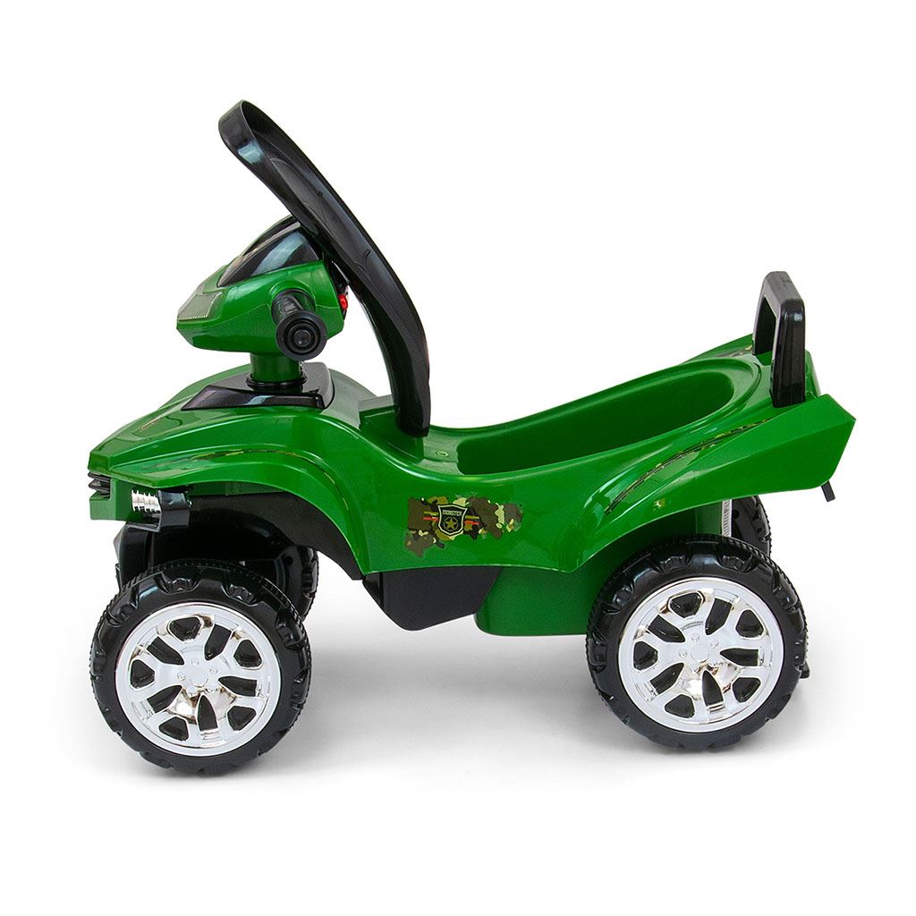 Il veicolo è dotato di molti accessori e sotto il sedile c'è uno spazio di stoccaggio dove il tuo piccolo conducente può riporre i suoi tesori più preziosi e portarli ovunque con sé. Il volante interattivo con pannello musicale incoraggia ulteriormente il tuo bambino a giocare e rende il gioco più piacevole grazie ai pulsanti che riproducono varie melodie. Guidare e spingere ha un effetto positivo sulla coordinazione motoria, stimola e sostiene il tatto e aumenta la precisione dei movimenti delle mani, mentre i segnali acustici e le luci colorate stimolano l'udito e la vista del bambino.