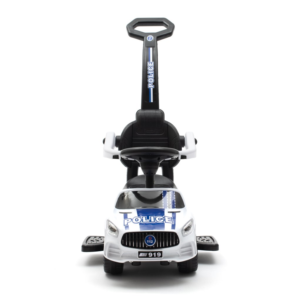 La macchinina della polizia Baby Mix è un vero e proprio sogno per tutti i piccoli tutori della legge. La lavorazione impeccabile e i dettagli come le ruote, le luci o la forma della carrozzeria attirano l'attenzione di tutti e diventeranno rapidamente il giocattolo preferito sia in casa che durante le passeggiate. È realizzata con materiali di qualità ed è dotata di un pannello sonoro. Questo veicolo aiuta a sviluppare le abilità motorie del bambino e garantisce tanto divertimento e gioia. Grazie a un blocco speciale nella parte posteriore, il tuo piccolo pilota è protetto contro il ribaltamento. Il maniglione, i poggioli e i poggiapiedi possono essere rimossi, permettendo al bambino di utilizzare l'auto come un classico scooter.