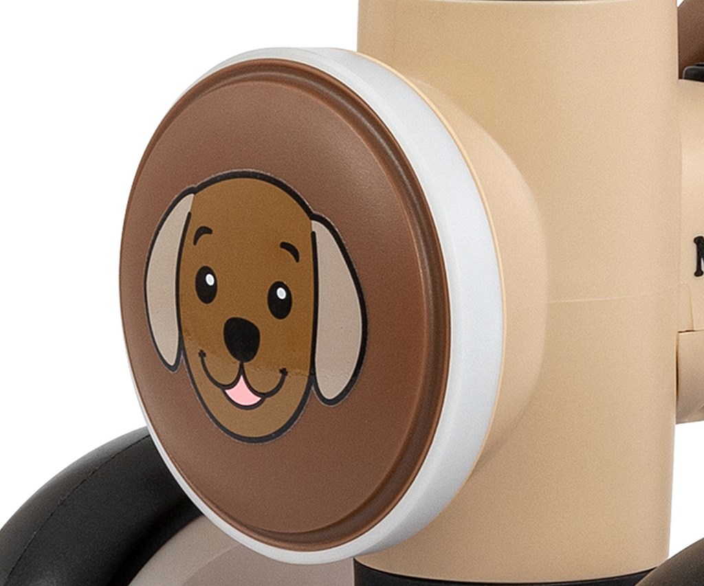 Una caratteristica chiave del YORK è la luce LED integrata posizionata nella parte anteriore, che non solo attira l'attenzione e migliora l'aspetto del pattino, ma aumenta anche la sicurezza, rendendo la corsa più realistica ed emozionante. Include anche effetti sonori – melodie e suoni di animali – che ne aumentano l'appeal. L'intero pattino è stato progettato con grande attenzione ai dettagli e il design colorato con un adorabile motivo animalier lo rende subito un giocattolo preferito per i bambini.