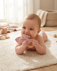 Il giocattolo da dentizione con il panno in mussola è un set ideale quando il bambino sta mettendo i dentini. Il giochino è realizzato in legno di faggio ecologico e morbido tessuto in mussola. Completamente sicuro per i bambini, offre un sollievo rinfrescante durante la dentizione. Può essere utilizzato anche come giocattolo per neonati. Il giocattolo da dentizione si abbina perfettamente ai nostri altri prodotti in mussola, creando così un bellissimo set da regalare a una festa per bambini.