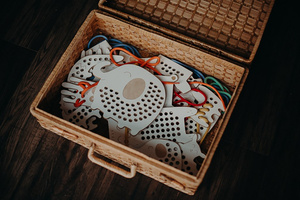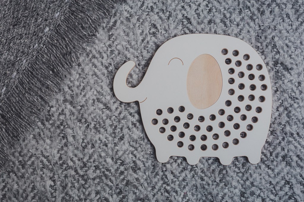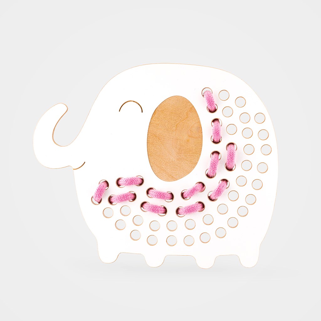 Un modello avanzato da infilare. Include un elefantino e un cordoncino.
