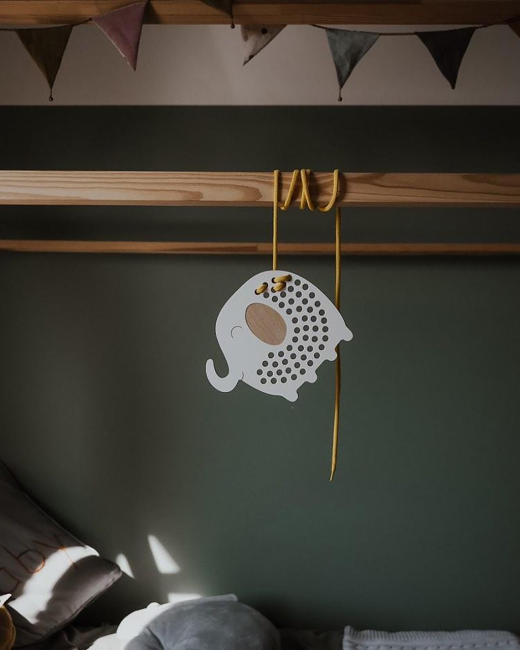 Giocattolo in legno Montessori con filo Elefantino Alfred