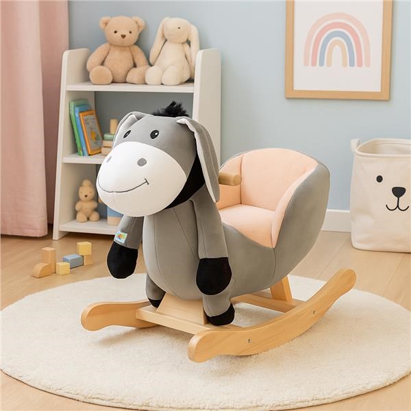 Eccezionale asinello a dondolo PlayTo con molte funzionalità. Il giocattolo ha una sella, maniglie in legno e scalini in legno per i piedi. Dondolarsi è molto importante per i bambini piccoli, stimola i loro sensi. L'asinello suona una melodia quando si preme il suo zampino. Le zampe sono morbide e mobili. Il bambino può facilmente raggiungere lo zampino dalla poltroncina e avviare una ninna nanna. L'asinello è realizzato in morbido materiale di peluche, permettendo al tuo bambino di divertirsi a lungo. La sella è comoda, sicura e bellamente sagomata. Adatto a bambini dai 18 mesi in su. Dimensioni: Giocattolo con parte a dondolo: lunghezza x altezza x larghezza: circa 65x60x40 cm. Altezza della sella da terra: circa 25 cm. Poltroncina: profondità x altezza x larghezza: circa 20x17x26 cm. Scalino per i piedi: lunghezza x larghezza: circa 13x3 cm.