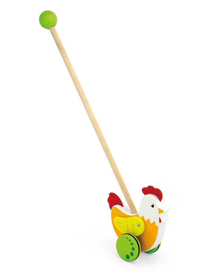 Delizioso giocattolo di legno su asta Viga pulcino è una fantastica alternativa ai giocattoli da trainare per bambini. È un gioco educativo perfetto. Ideale per passeggiate insieme e per giocare a casa. Ti divertirai tantissimo con esso, portando gioia e divertimento. Gli elementi in gomma attaccati alle ruote imitano in modo divertente la camminata degli animali. Questo giocattolo aiuta a migliorare la manualità e l'agilità, insegna ai bambini a riconoscere forme e colori, coinvolgendo e sviluppando il senso di osservazione. Il giocattolo è realizzato in legno verniciato. La nostra priorità è la sicurezza e la qualità dei nostri prodotti, pertanto i colori utilizzati nei giocattoli non sono tossici e soddisfano gli standard di sicurezza (EN71 e ASTM). Dimensioni del giocattolo: 15x8,3x5,6 cm. Indicato per bambini a partire dai 2 anni. Il giocattolo è adatto come un bel regalo per i più piccoli.