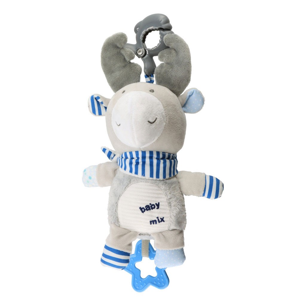 Bellissimo peluche sonoro Baby Mix. Il giocattolo è realizzato in morbido tessuto di peluche con un gancio per essere afferrato. La melodia della musichetta attirerà l'attenzione del tuo bambino e lo rassicurerà. Ideale per i neonati. Le parti del giocattolo sviluppano la percezione sensoriale del bambino e stimolano la sua fantasia. Altezza circa 24 cm. Adatto per bambini fin dai primi giorni di vita.