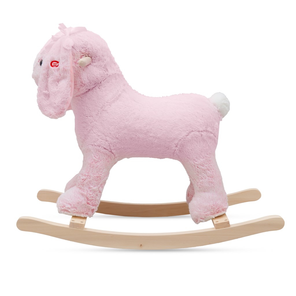 Le stabilità delle slitte in legno e delle maniglie garantiscono un dondolio sicuro, mentre la melodia attivata da un pulsante sviluppa l'udito e porta grande gioia ai bambini. Il coniglietto è dotato di un comodo sedile senza schienale, ideale per i più grandi che già sanno mantenere l'equilibrio.