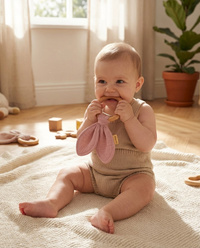 Il massaggiagengive con mussola è un set ideale quando il bambino inizia a dentire. Il massaggiagengive è realizzato in legno di faggio sicuro per l’ambiente e in morbido tessuto di mussola. Completamente sicuro per i bambini, offre un sollievo calmante durante la fase di eruzione dei denti. Il massaggiagengive può essere utilizzato anche come giocattolo per neonati. Si abbina perfettamente ai nostri altri prodotti in mussola, creando così un bel set da regalare a una festa per bambini.