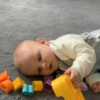 Sul lato superiore del secchiello inseribile Baby Mix ci sono 8 diverse aperture, in cui è possibile inserire 16 forme geometriche e lettere di colori diversi. Il giocattolo sviluppa il tatto, la vista e le capacità cognitive. Il secchiello è progettato per un facile trasporto.