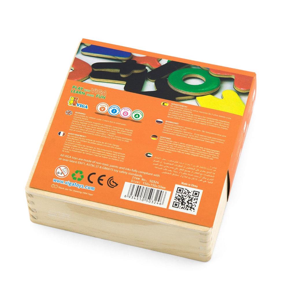 Le lettere magnetiche sono confezionate in una elegante scatola di legno con una finestra trasparente in acrilico per una facile conservazione e sono perfette come regalo.