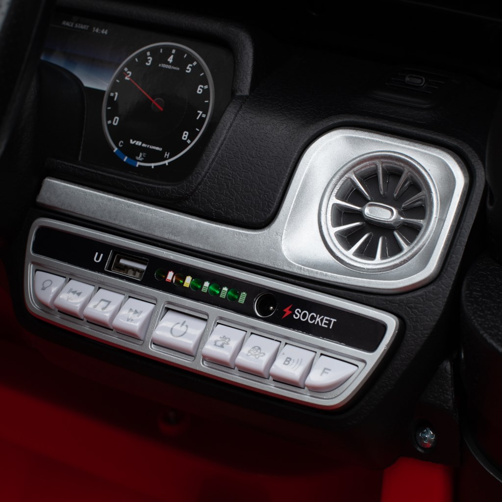 L'auto si ispira al popolare modello Mercedes-Benz G63 AMG e colpisce per la sua lavorazione precisa in ogni minimo dettaglio, dal volante sportivo al cruscotto chiaro, fino alle ruote stilose con il logo Mercedes. Le porte apribili e le luci LED anteriori conferiscono all'auto un aspetto ancora più autentico.
