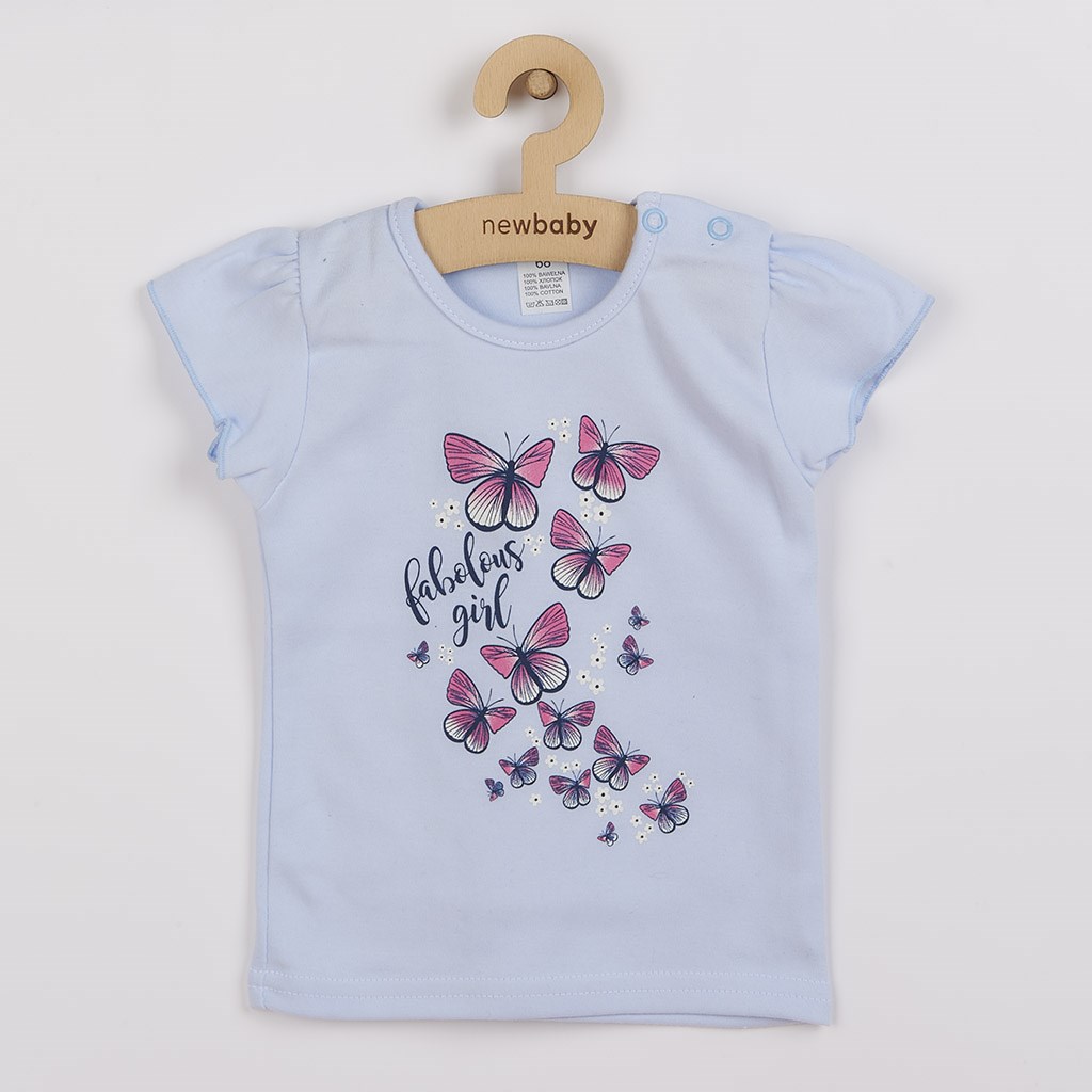 Delizioso e stiloso completo a 2 pezzi per bambine del marchio ceco New Baby Butterflies. Il completo è composto da una maglietta e una gonna. La maglietta con maniche corte arricciate è decorata con un'immagine di farfalle. La chiusura con bottoncini sulle spalle facilita il vestire del bambino passando per la testa. La gonna di un elegante blu scuro è arricchita da un bel volant che le dona un tocco di stile. La vita è dotata di un elastico ampio, che non preme sulla pancia del bambino. Il completo è cucito con precisione e qualità ed è realizzato in un materiale molto morbido, nel quale la tua bambina si sentirà estremamente a suo agio. Taglio moderno, farfalle, volants e colori bellissimi. Tutto questo lo troverai nel nostro completo Butterflies, un must-have nell'abbigliamento femminile. Composizione: maglietta: 100% cotone, gonna: 95% cotone, 5% elastan.
