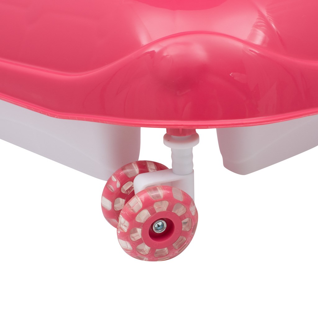 Carrello multifunzionale Baby Mix con ruote in silicone. Il carrello è dotato di un comodo sedile ergonomico, che garantisce una corretta postura della colonna vertebrale. Il pannello multimediale include vari effetti luminosi, un volante sonoro girevole, pulsanti per la riproduzione di melodie e due luci. Un bellissimo carrello con giocattoli affascinerà i piccoli esploratori e li permetterà di giocare ancora più a lungo. Il carrello è dotato di un sistema speciale anti-ribaltamento, che garantirà il comfort e la sicurezza del tuo bambino.