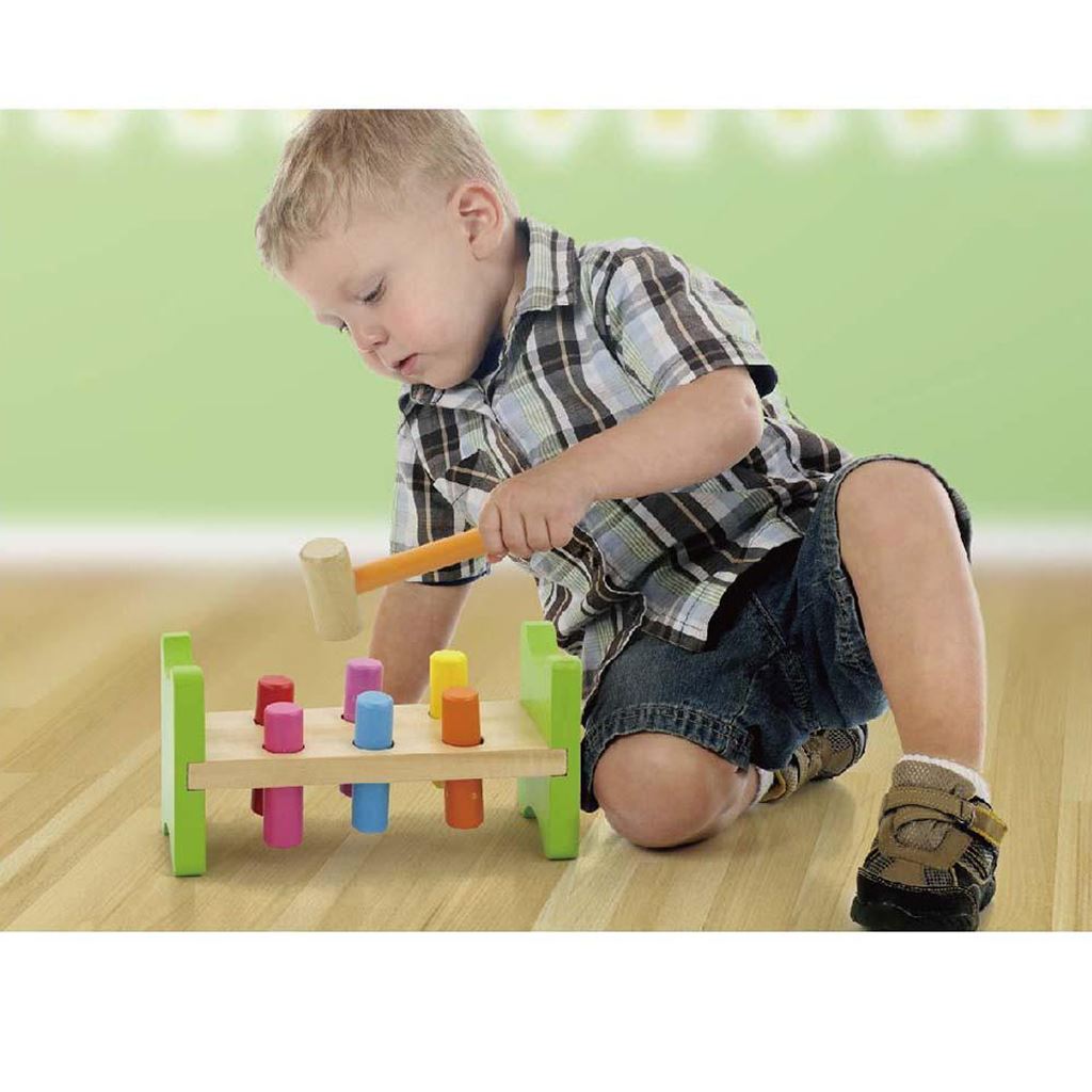 Martello colorato in legno Viga, che ogni bambino adorerà. Tavoletta in legno con sei fori e un martello per esercitarsi a battere. Dopo aver battuto i chiodini, la base può essere capovolta per ricominciare a battere. Il set include una base, 6 chiodini colorati e un martello. Giocattolo adatto per bambini dai 2 anni in su. La nostra priorità è la sicurezza e la qualità dei nostri prodotti, pertanto i colori utilizzati sui giocattoli non sono tossici e rispettano gli standard di sicurezza (EN71 e ASTM). Adatto come un bel regalo che i vostri bambini ameranno. Dimensioni: 23x12x8 cm, dimensioni della confezione: 27x15x9 cm.