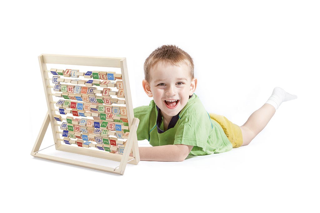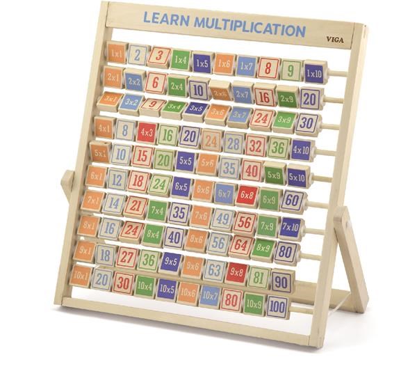Affinché l'apprendimento della tabellina non sia difficile, è opportuno introdurre il bambino fin da piccola età. La tavola è sostenuta da una base in legno che ricorda un abaco. Su 10 aste di legno ci sono dei cubi con stampa doppia faccia; su un lato si trova l'operazione e sul retro il risultato della moltiplicazione. La possibilità di ruotare i cubi rende l'apprendimento ancora più attraente. Questo giocattolo sarà un ausilio indispensabile per gli studenti.