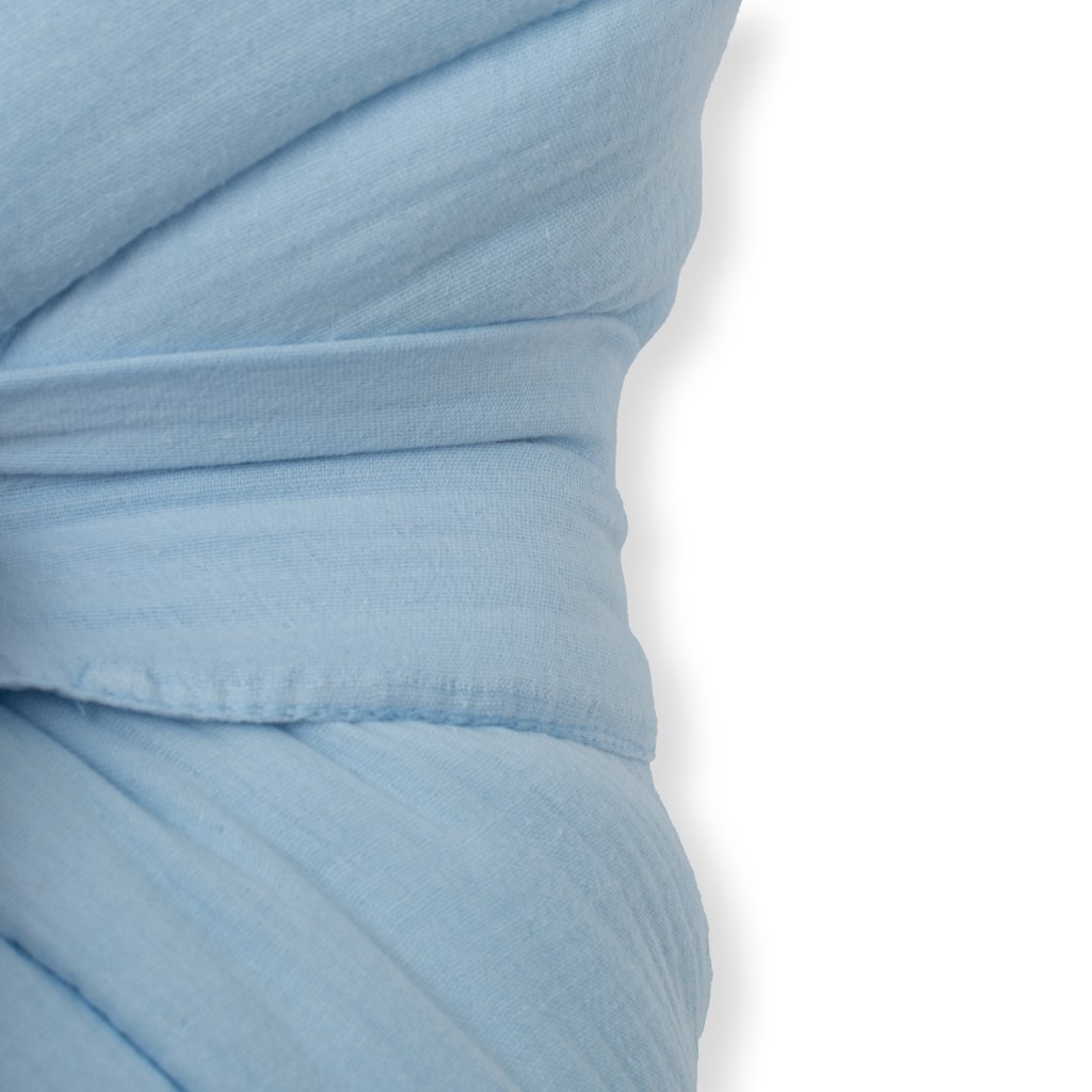 Il mussola è uno dei tessuti più puri, semplici e delicati al mondo. E cosa lo rende così speciale? Soprattutto la sua traspirabilità. La struttura leggera consente al mussola di "respirare" e garantisce una sufficiente circolazione dell'aria, riducendo il rischio di surriscaldamento. Il mussola è molto resistente e riesce a sostenere senza problemi lavaggi ripetuti, diventando nel tempo ancora più leggero e morbido.