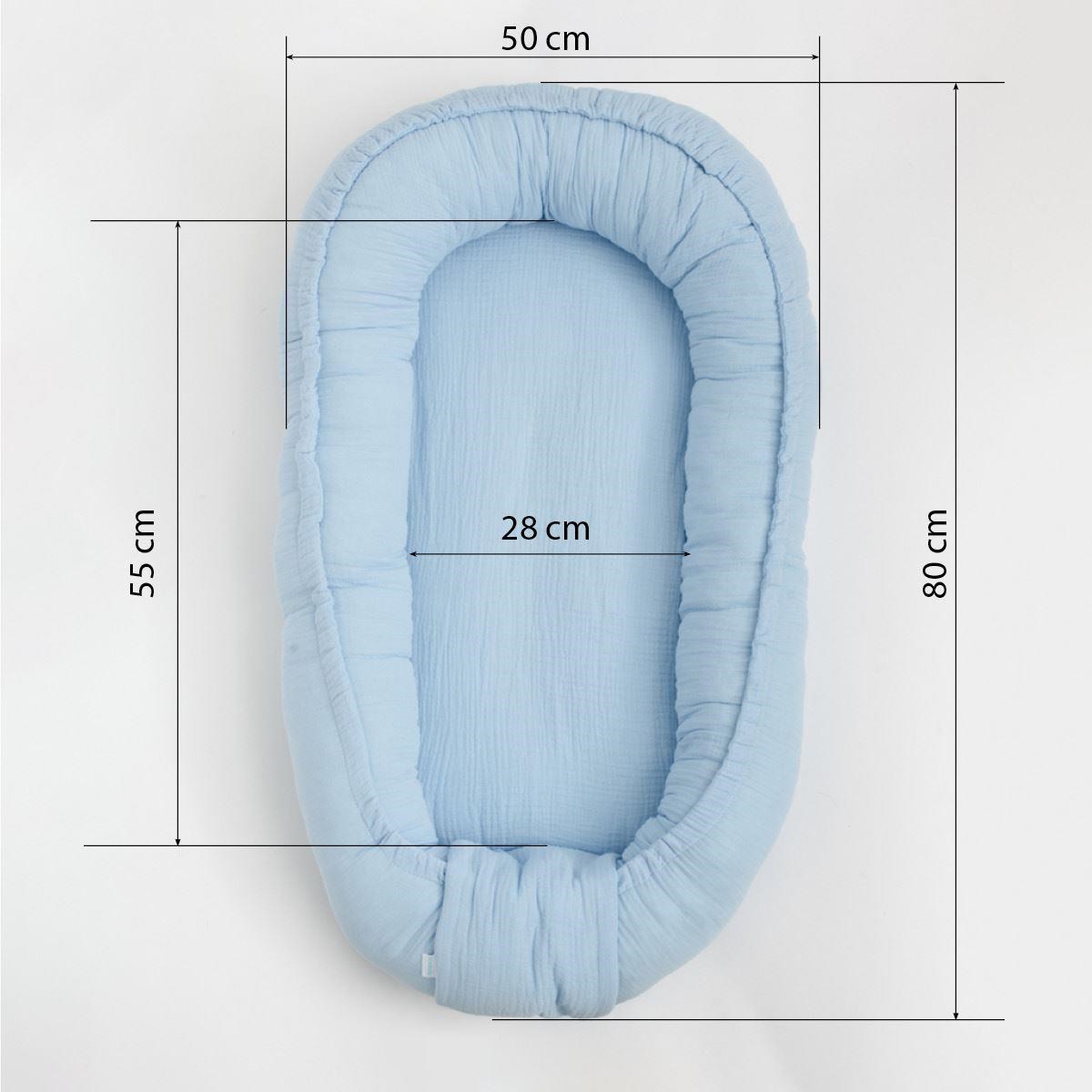 Il nido in mussola New Baby è realizzato con il miglior filato di cotone di alta qualità. Permette di posizionare il bambino in una posizione comoda e, soprattutto, il piccolo può essere mantenuto vicino alla mamma in un cocoon. Durante i viaggi, il nido può essere portato con sé, affinché il bambino, abituato all'odore di casa e del proprio posto, possa dormire serenamente in un luogo diverso. Il nido può essere posizionato nella culla, sul divano, sul pavimento o nel passeggino. Il bambino può dormire, riposare o giocare al suo interno. Il nido sarà un ottimo aiuto nella vostra casa. Adatto per bambini da 0 a 12 mesi.