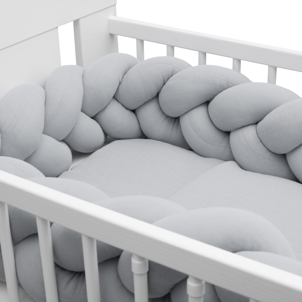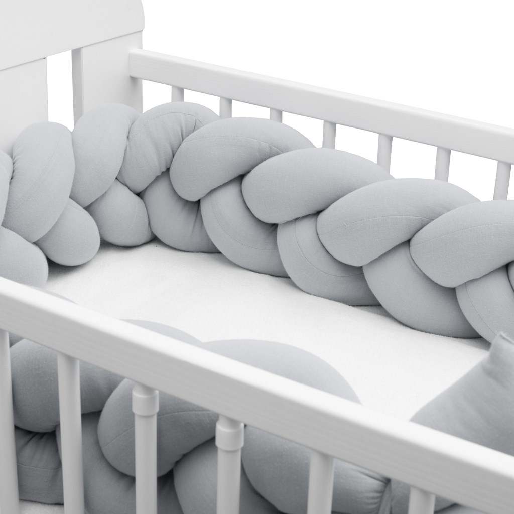 Il morbido e pratico cordone intrecciato del brand ceco New Baby è un'alternativa moderna al tradizionale paracolpi o cuscini per la culla, non solo per il lettino dei bambini. Tutti e tre i trecce sono realizzati in tessuto di cotone di alta qualità e imbottitura in poliestere anallergico, intrecciati a mano. Puoi usarlo nel lettino, nella culla, dove protegge il bambino dagli spigoli duri del lettino e isola dal muro freddo. Nella tua lettiera, svolge la funzione di nido, avvolgendo il bebè per una sensazione di sicurezza e comfort ancora maggiore. Il paracolpi si adatta a qualsiasi lettino e può essere facilmente fissato con i tre nastri forniti. I bambini più grandi possono utilizzarlo per divertirsi o come decorazione originale per la stanza dei bambini.