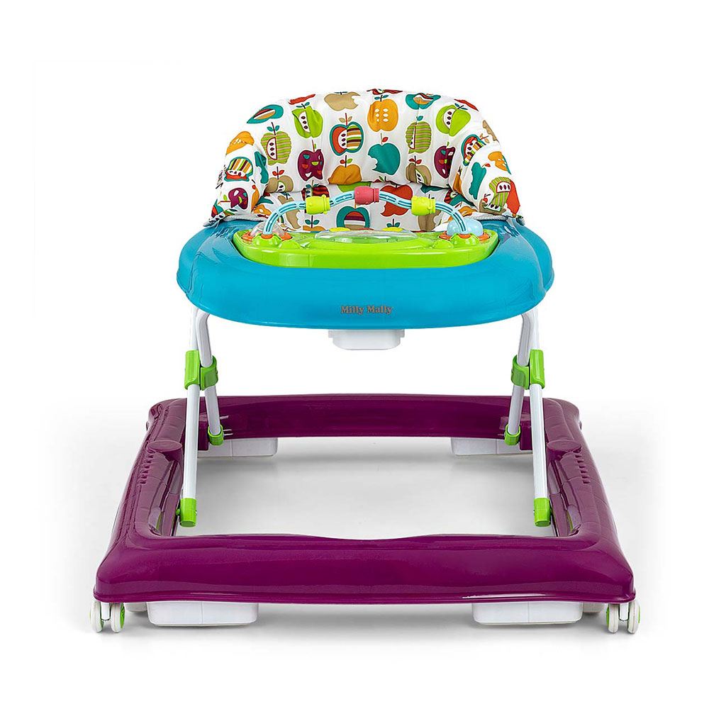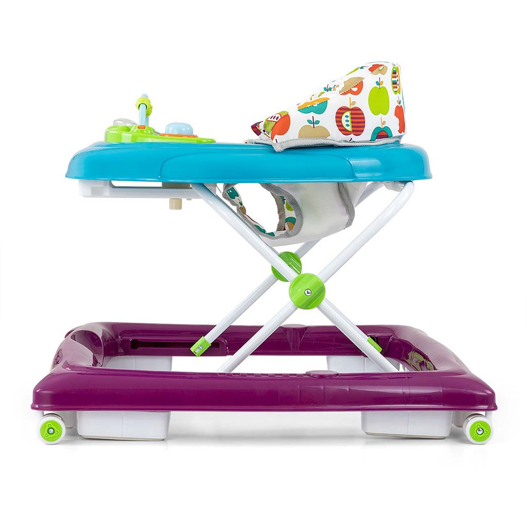 Il prodotto è dotato di un pannello educativo che contiene una serie di sorprese per i piccoli esploratori: luci, fischietti, melodie, sonagli, pulsanti e altri elementi galleggianti. Rimuovendo il pannello dal vassoio del deambulatore, può essere utilizzato come un giocattolo separato, ad esempio come compagno di viaggio, e il pannello diventa un tavolino da gioco.