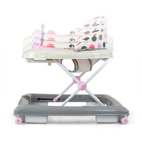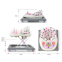 Il prodotto è dotato di un pannello educativo che contiene una serie di sorprese per i piccoli esploratori: luci, fischietti, melodie, sonagli, pulsanti e altri elementi galleggianti. Rimuovendo il pannello dal vassoio del deambulatore, può essere utilizzato come un giocattolo separato, ad esempio come compagno di viaggio, e il pannello diventa un tavolino da gioco.