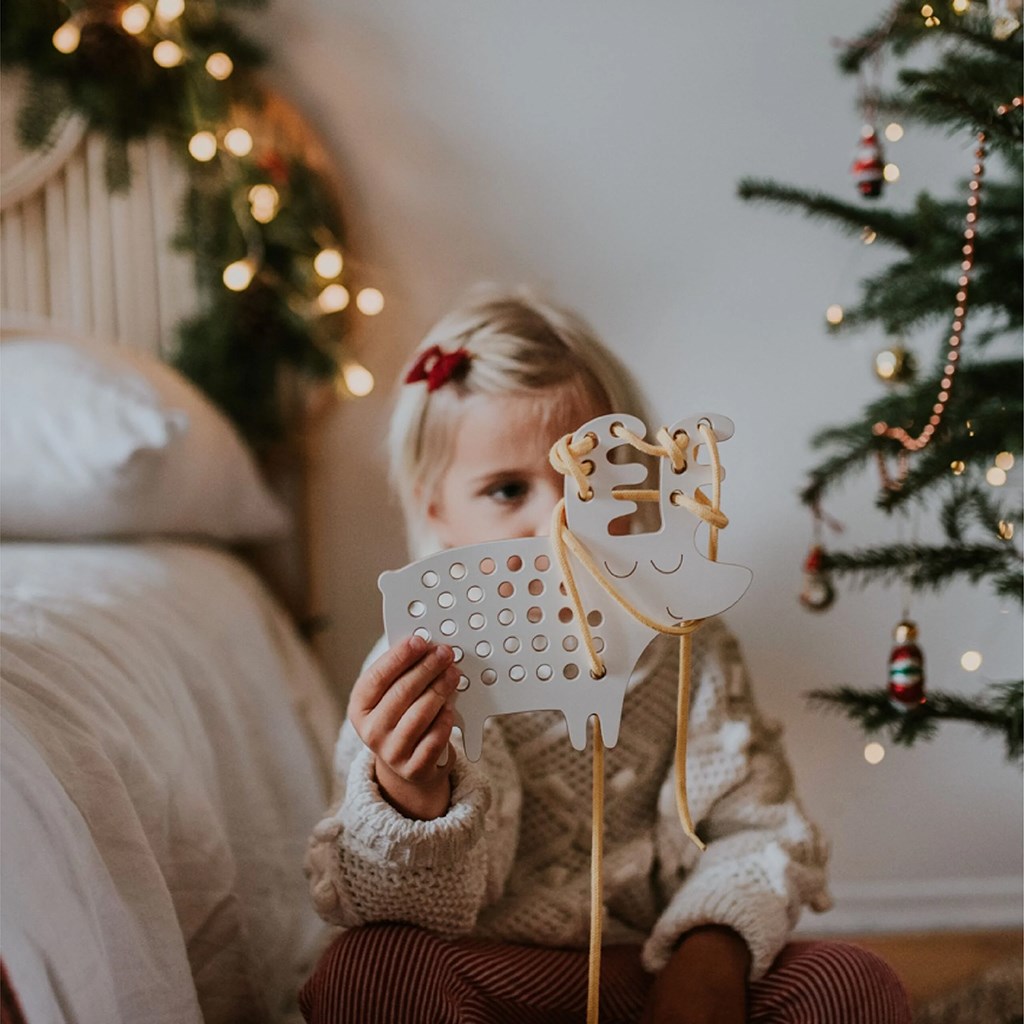 Modello per principianti da infilare. Include una renna e un cordino.